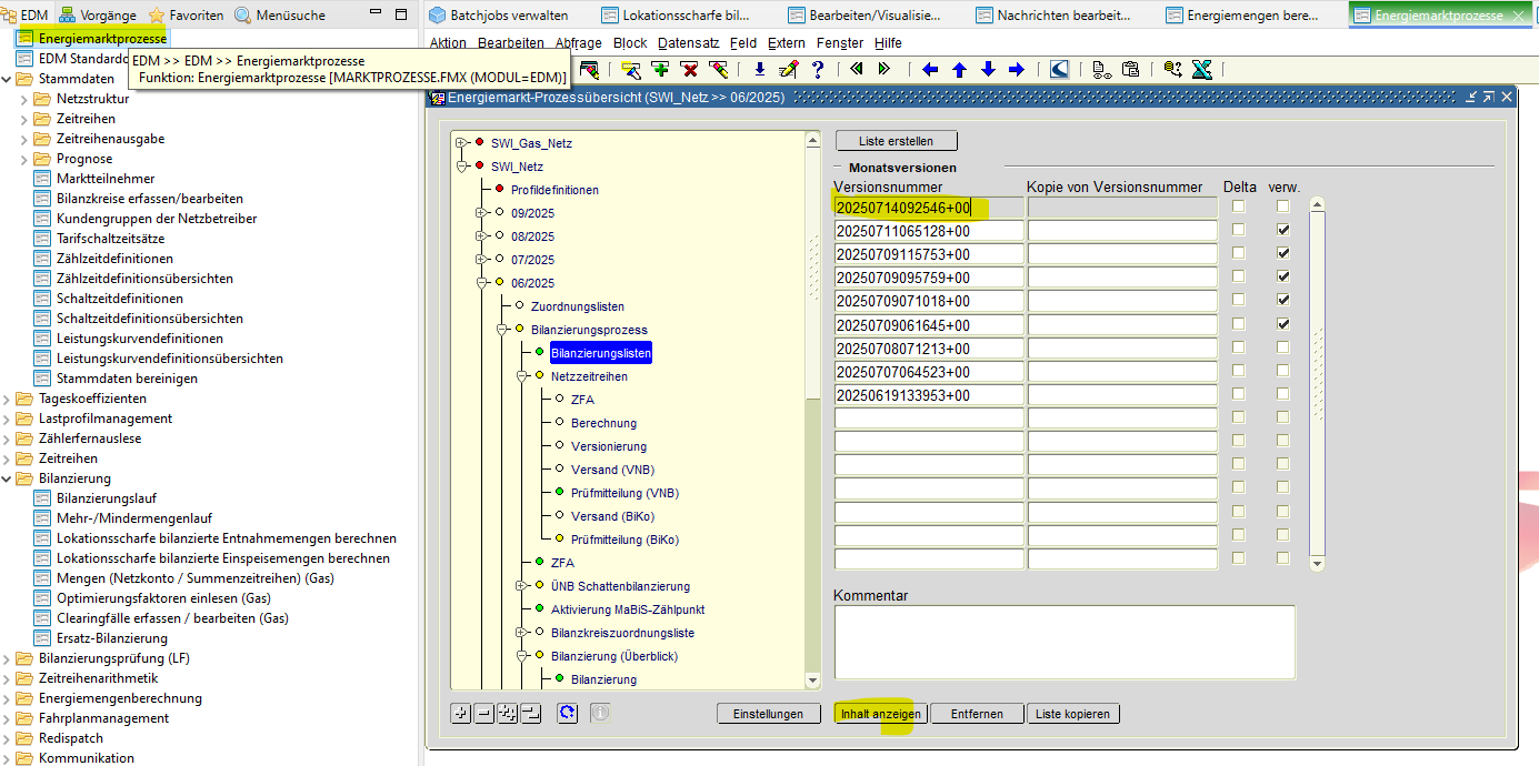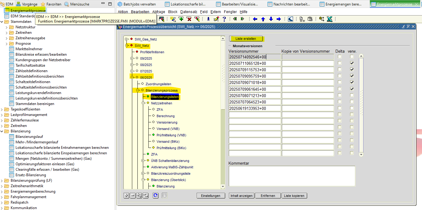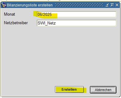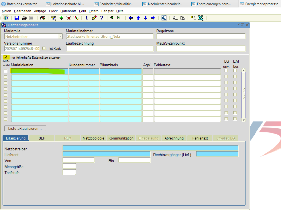 Neu erstellen, wenn Liste bereits verwendet und Bilanzierungsverfahren/ Aggregation/ Prognosewert/ Bilanzkreis korrigiert werden.