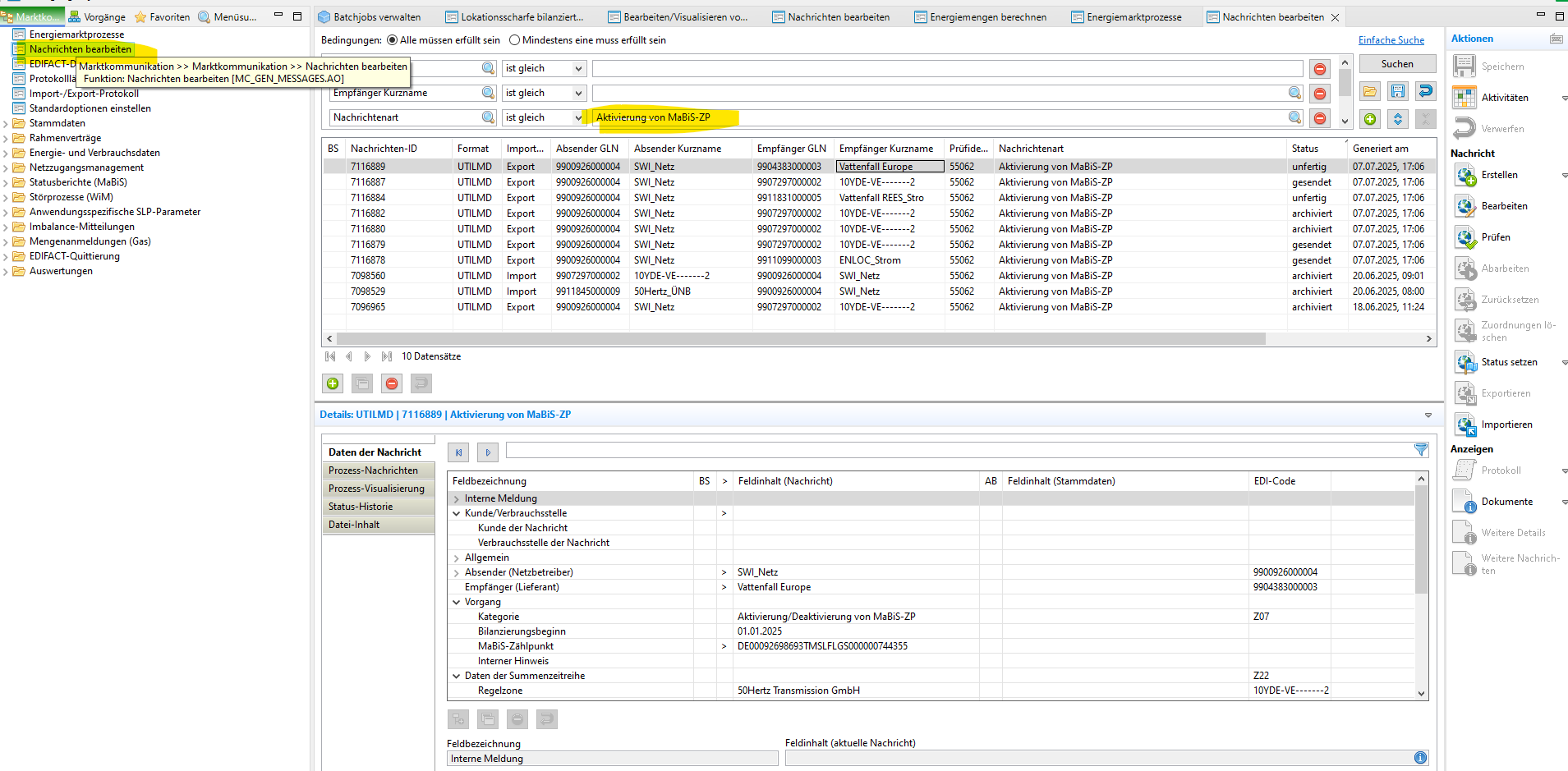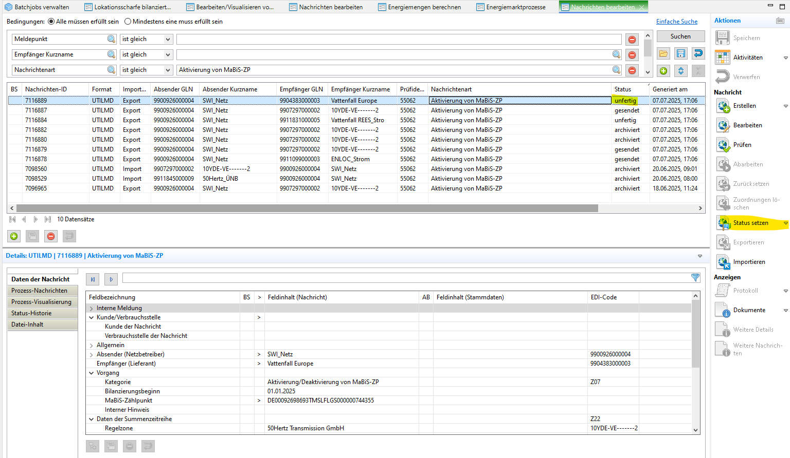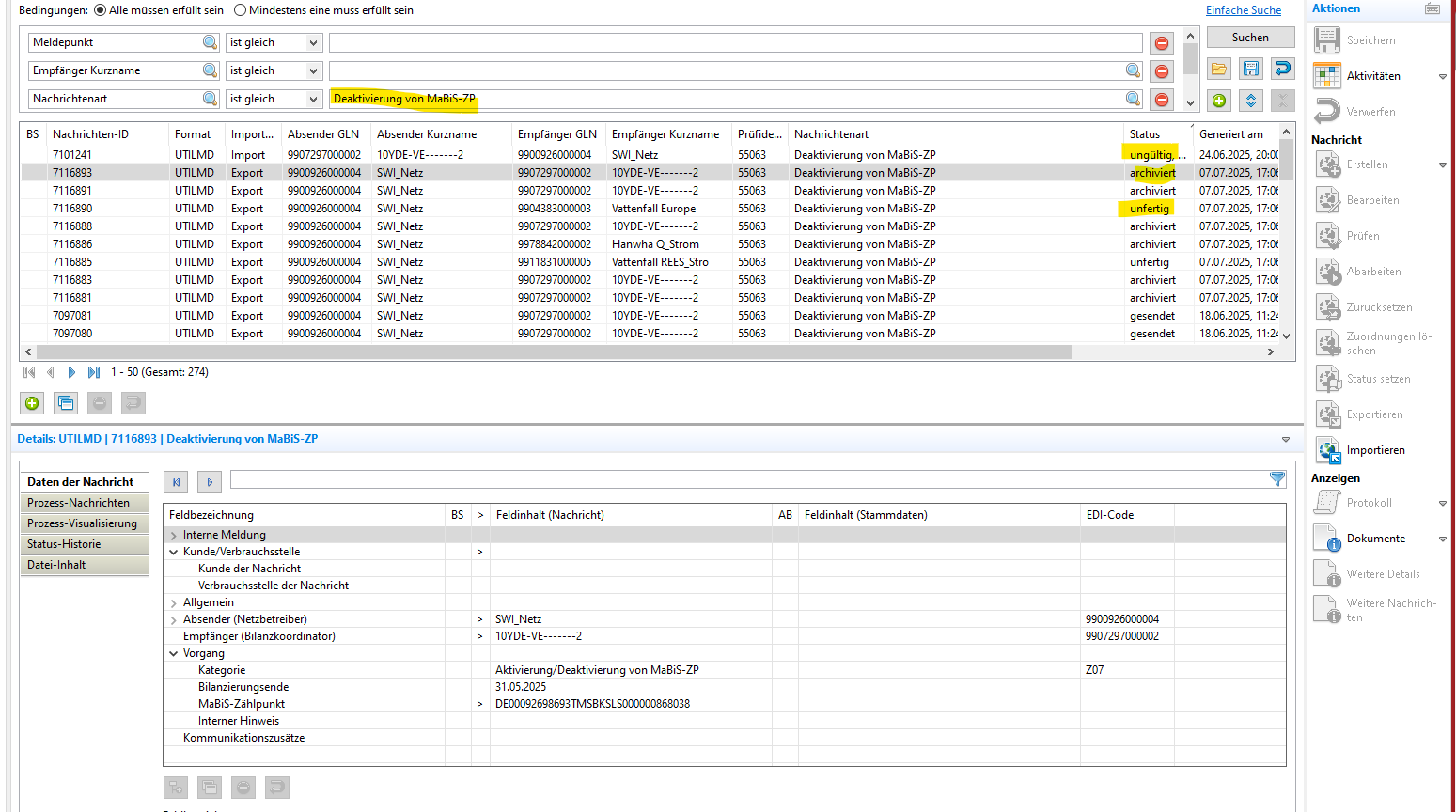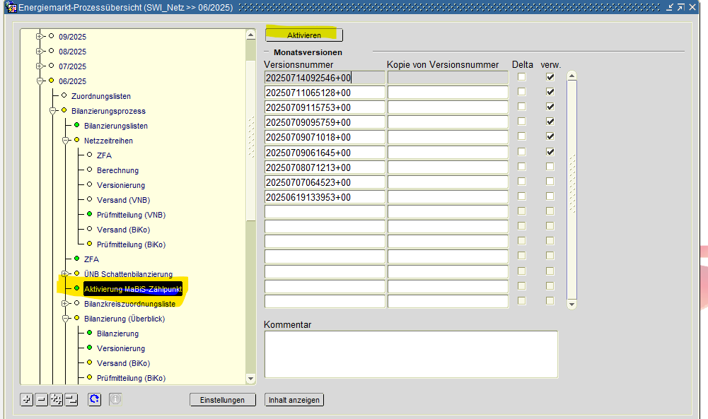 - Muss 48 h vor Versand der SZR (ÜNB/ Lieferanten) aktiviert werden