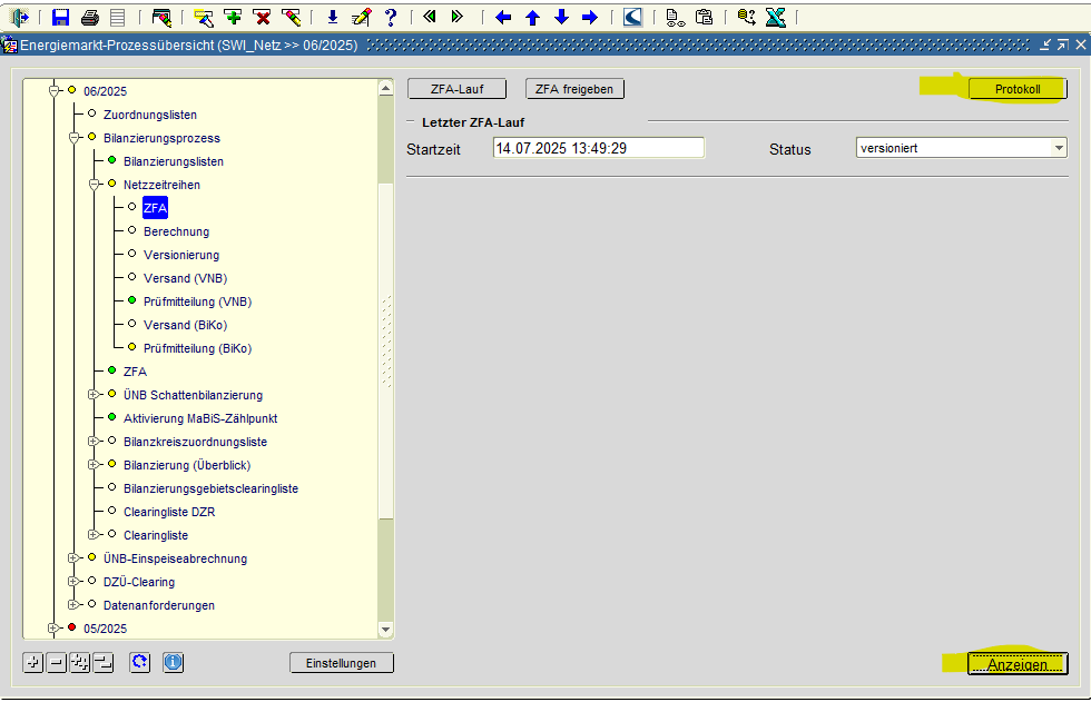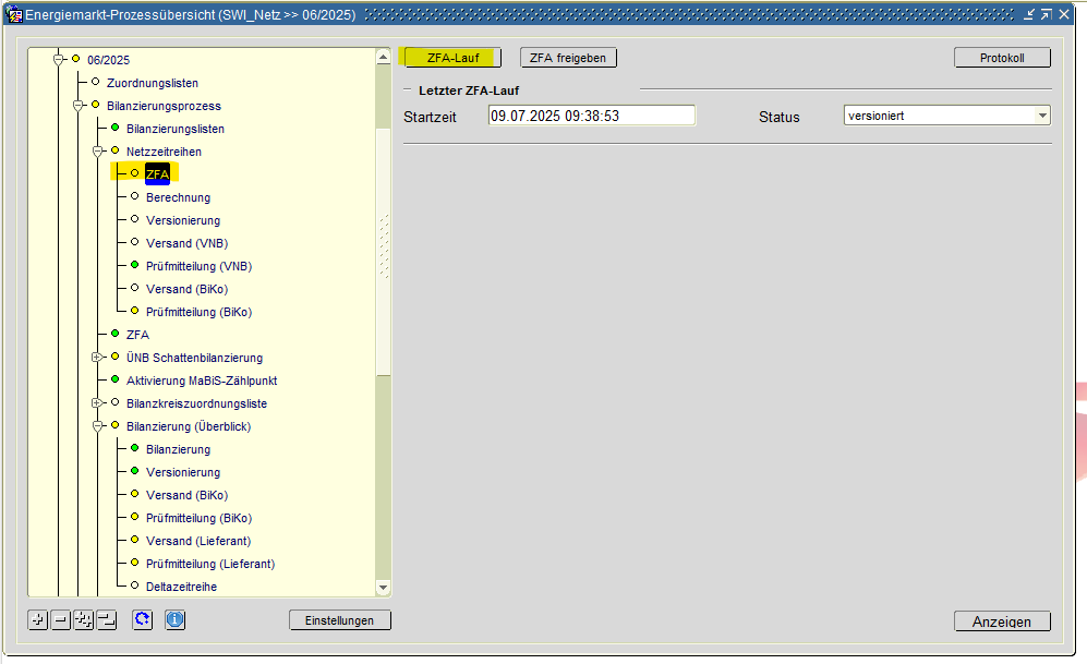 Protokoll auf Fehler prüfen, ZFA Lauf anzeigen.