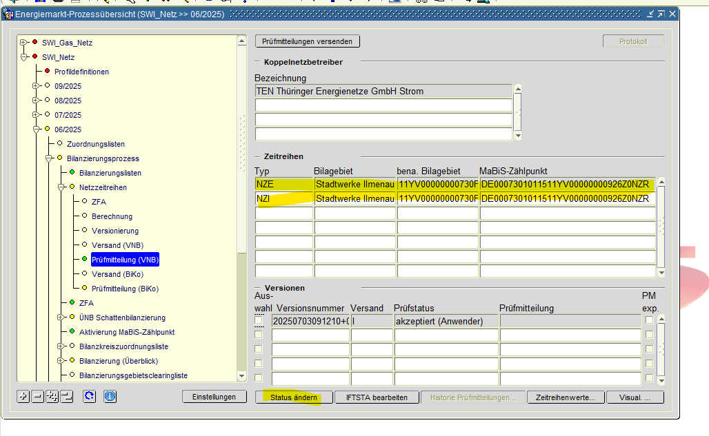 - Voraussetzung NZI/ NZE vom vorgelagerten NB (TEN) empfangen.