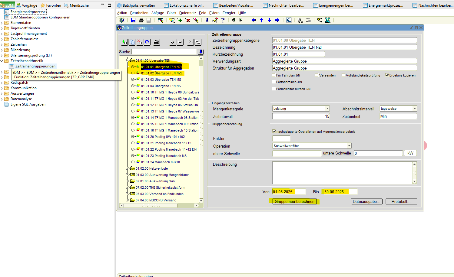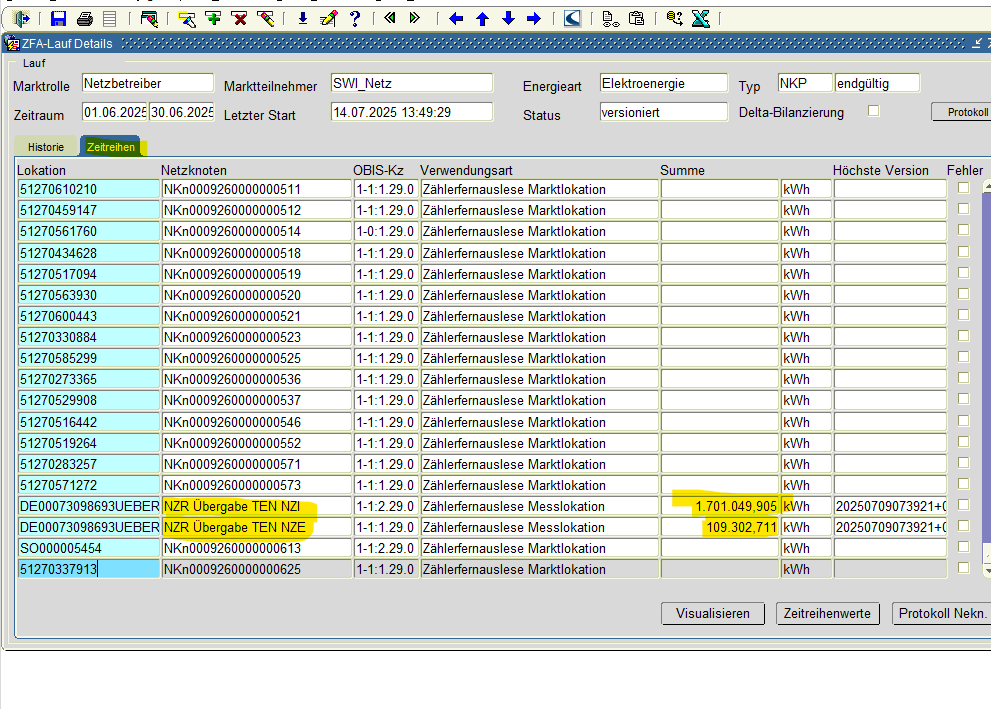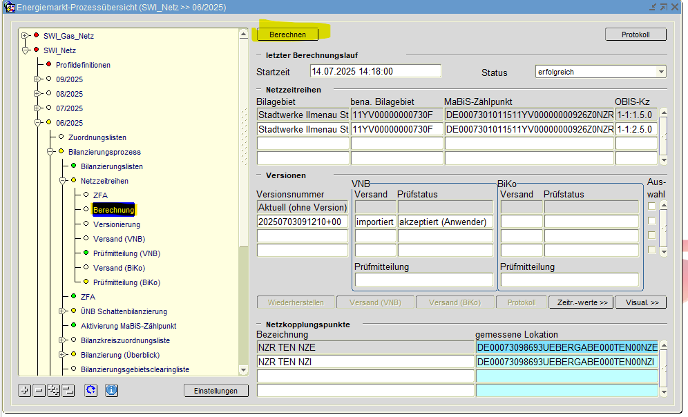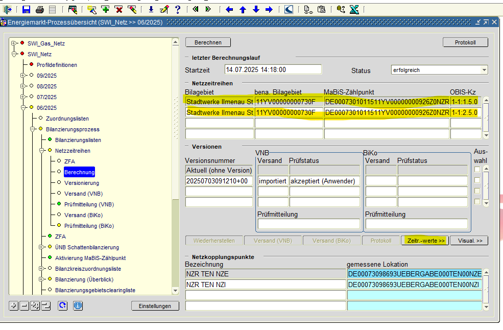 NZI, NZE neu berechnen. Prüfen, ob ÜST mit Trafoverlust vorher mit berechnet werden. --> 01.01.1X TF MG 1 XXXXXX (Ansonsten Berechnungen für alle TF starten). Berechnung erfolgreich, wenn Werte blau sind (Blank/ Wahrer Wert)