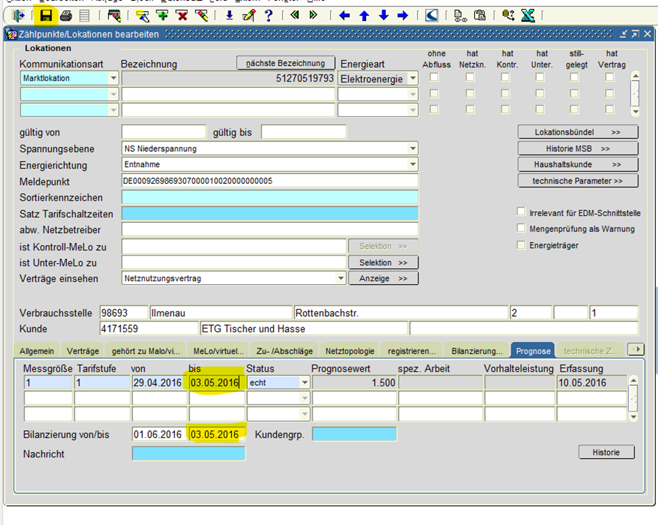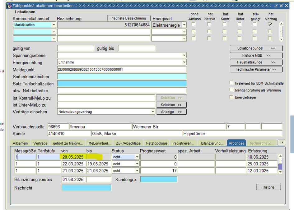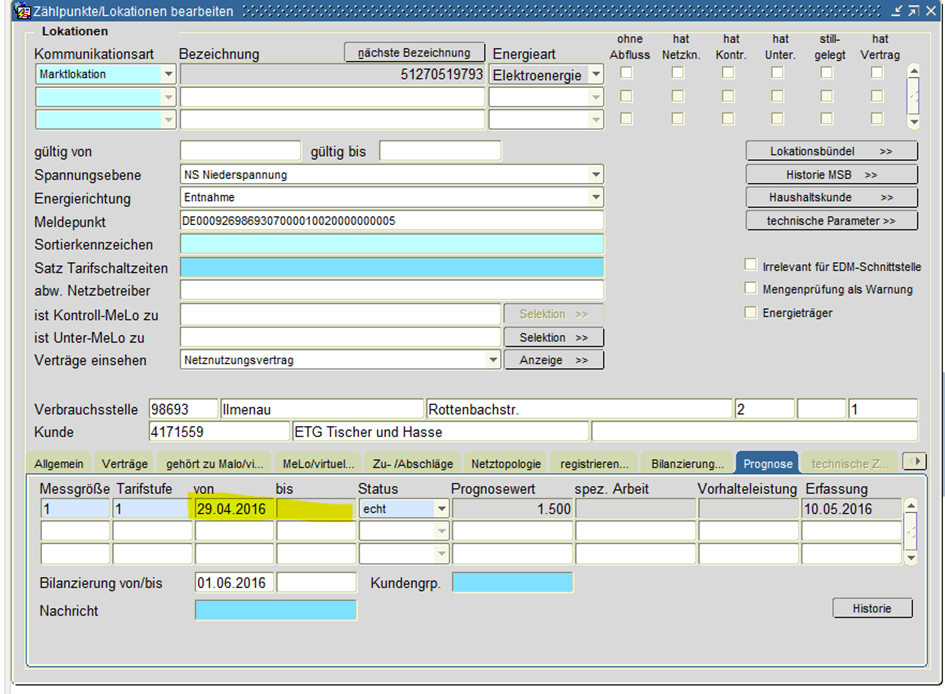 EDM-1863 Der Prognosewert zur Abrechnung konnte nicht ermittelt werden. Bitte prüfen Sie, ob ein Prognoseeintrag im Bilanzierungszeitraum zur Marktlokation und zum Kunden angelegt wurde.