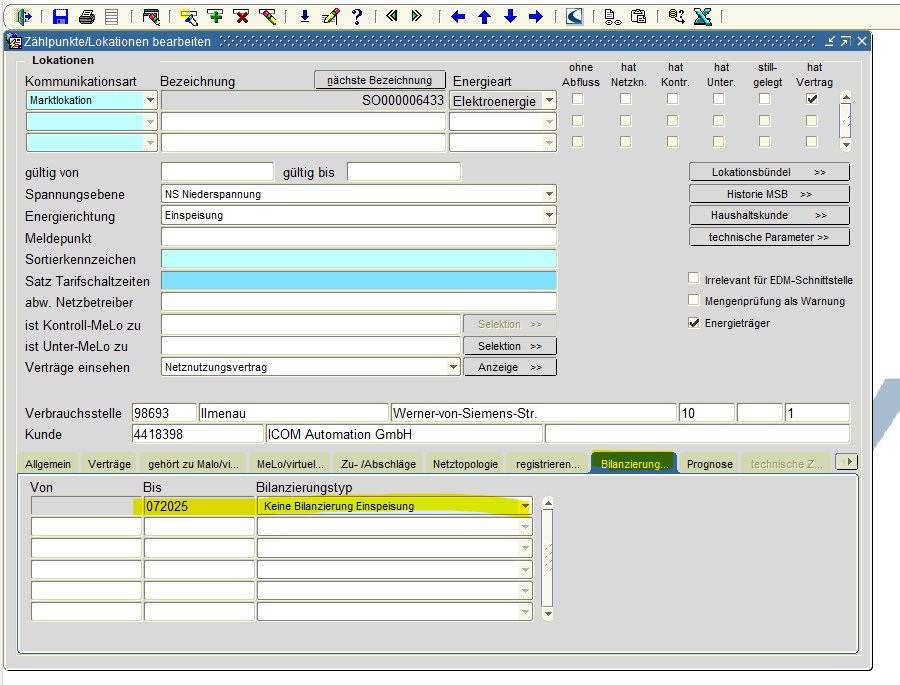 EDM-4462 Die Lokation (Gruppe 'BILA_OHNE_NN') ist möglicherweise bilanzierungsrelevant. Durch einen internen Fehler in der Abarbeitung konnten die Bilanzierungsdaten jedoch nicht ermittelt werden.