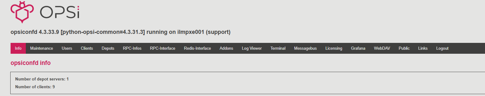 - Info: Informationen zum Zustand und Installationsstatus des OPSI-Servers