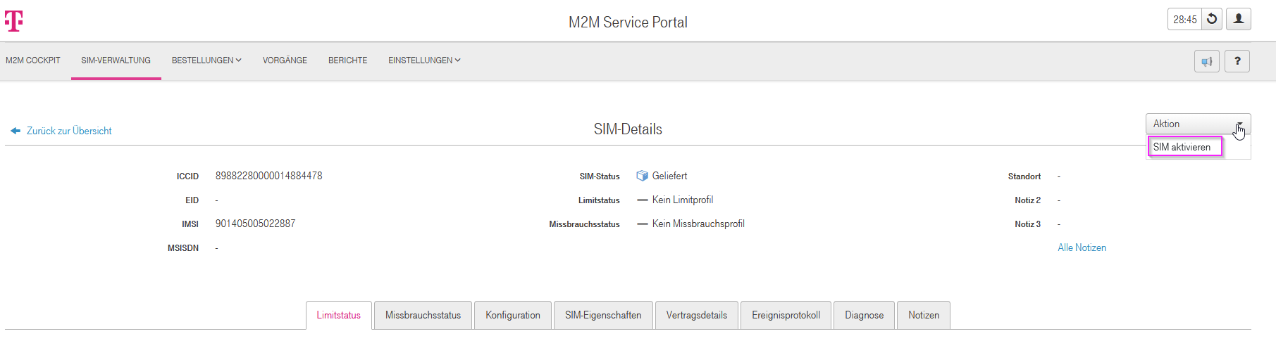 SIM-Verwaltung >> SIM auswählen >> Aktion >> SIM aktivieren