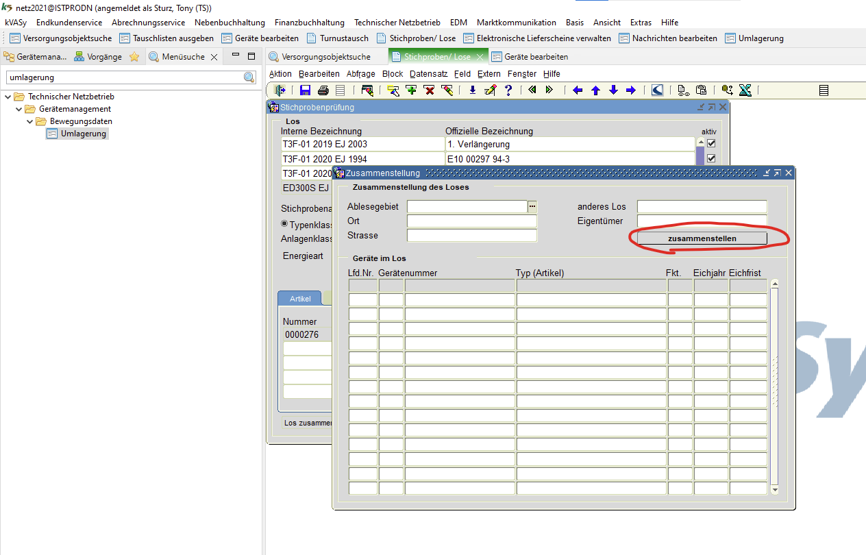 Ausfüllen, anscließend "F8 Abfrage Ausführen" und auf "Los zusammenstellen"