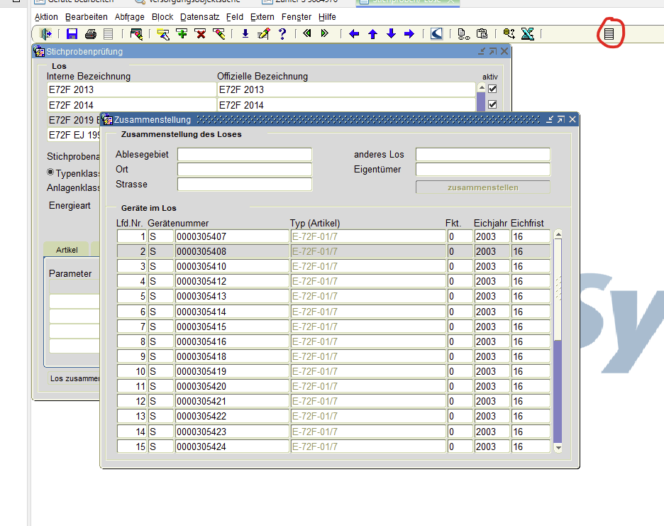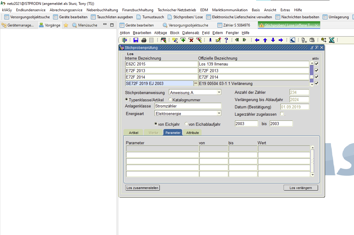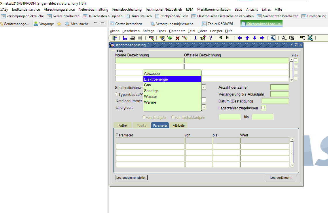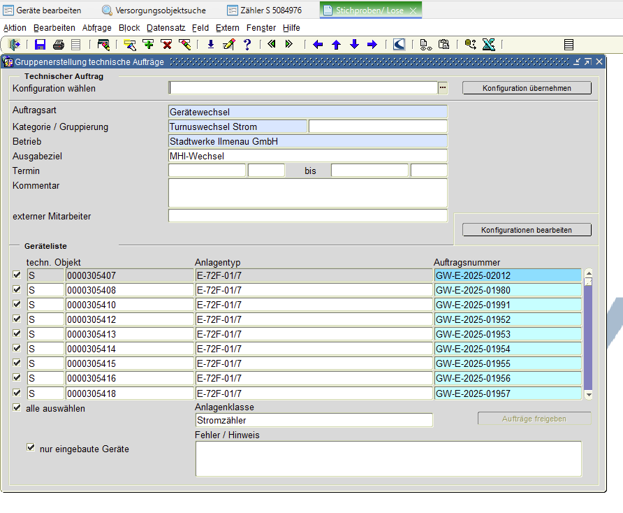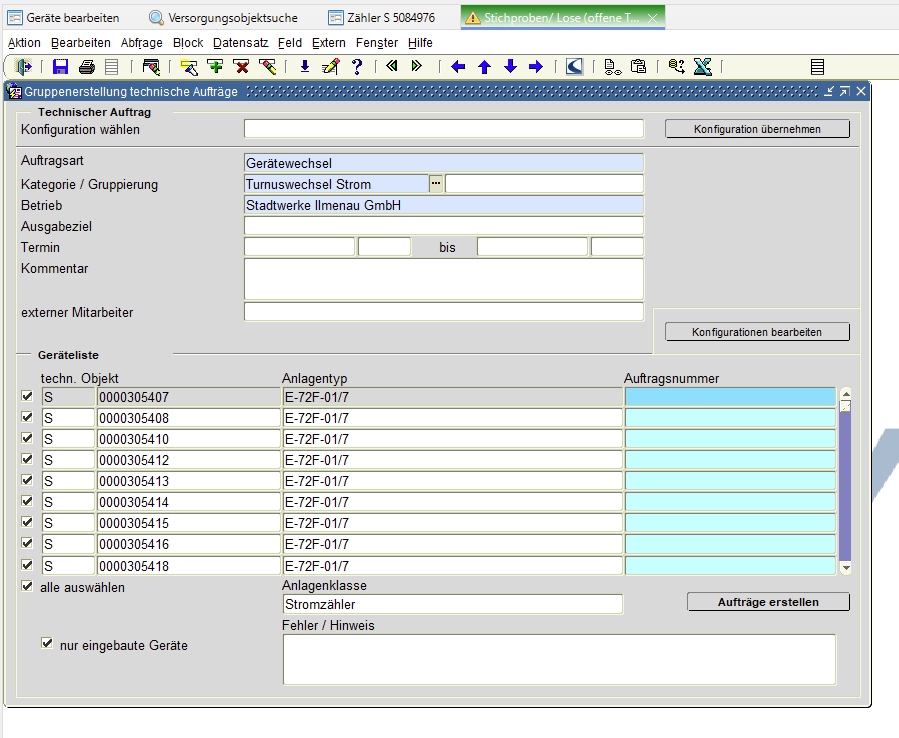 Einen Zähler aus der Liste anklicken, dann oben auf "Techn. Auftrag erzeugen"