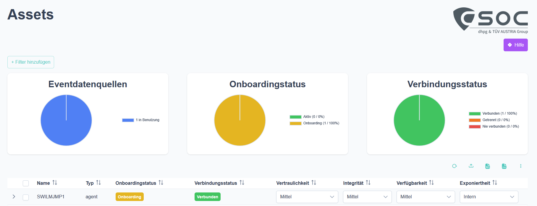 Neu registrierter Agent sollte nach einiger Zeit im Assets-Dashboard als "Verbunden" erscheinen: