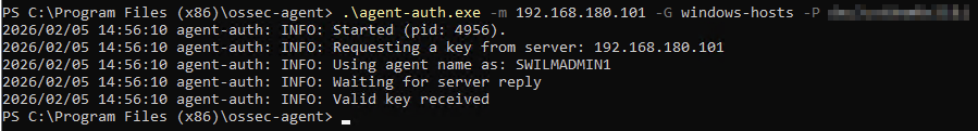 .\agent-auth.exe -m <SENSOR-IP> -G windows-hosts -P <REG-PW>Output bei Erfolg: