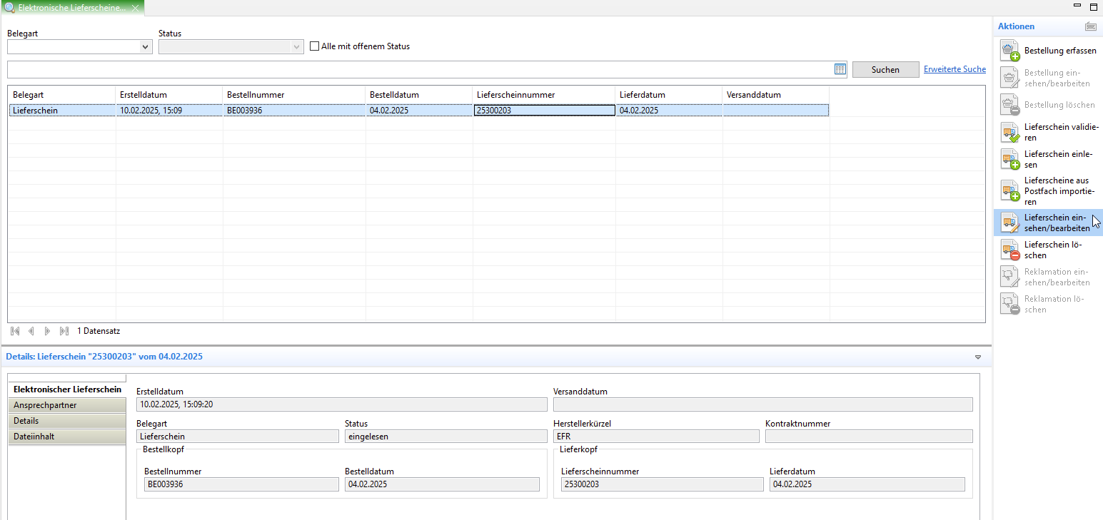 Elektronischen Lieferschein einlesen