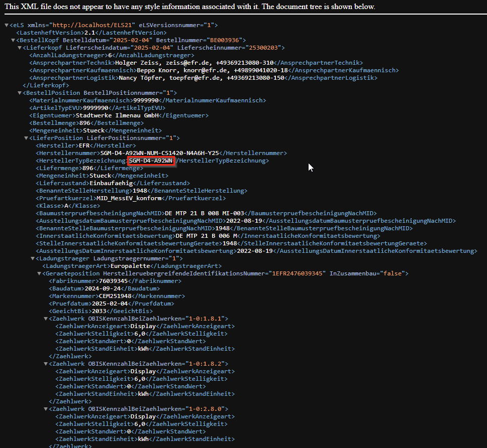 aus dem elektronischen Lieferschein: